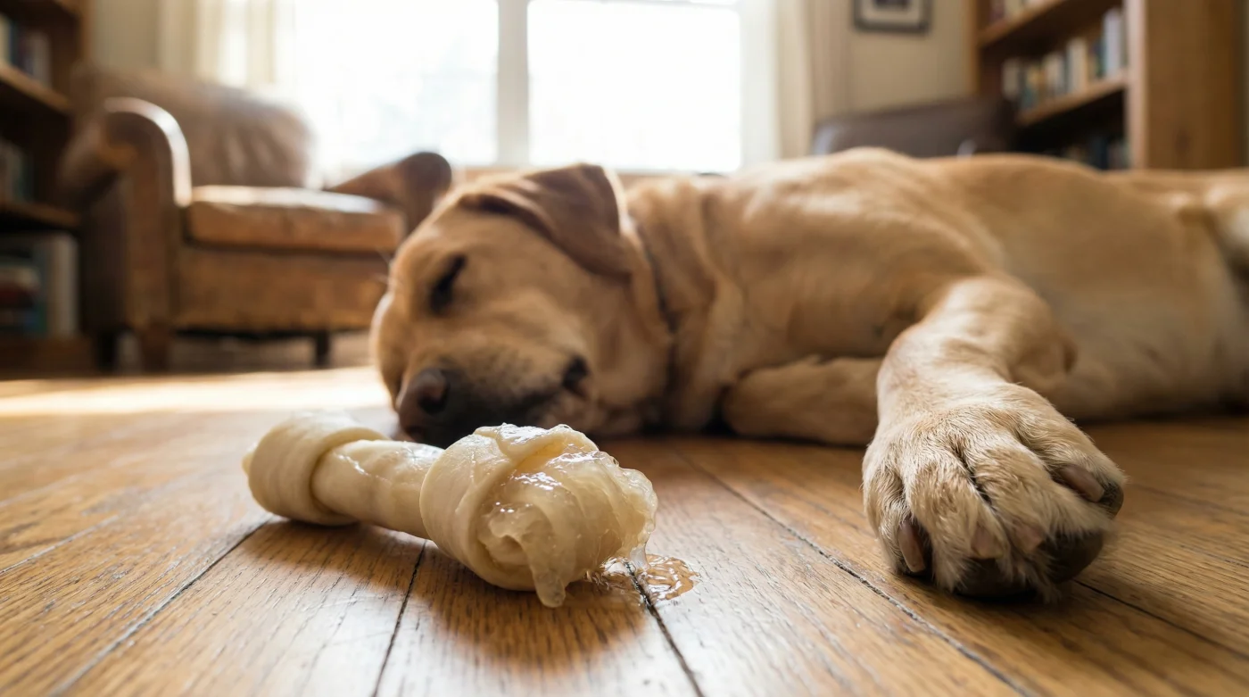 Il salotto è immerso in un silenzio pomeridiano quasi perfetto. L’unico suono è quello ritmico e cadenzato del tuo cane accoccolato sul tappeto, impegnato a sgranocchiare con dedizione il suo nuovo passatempo. Hai speso pochi euro al supermercato per quello che sembra un innocuo osso di bufalo, convinto di avergli regalato un frammento di natura selvatica.
