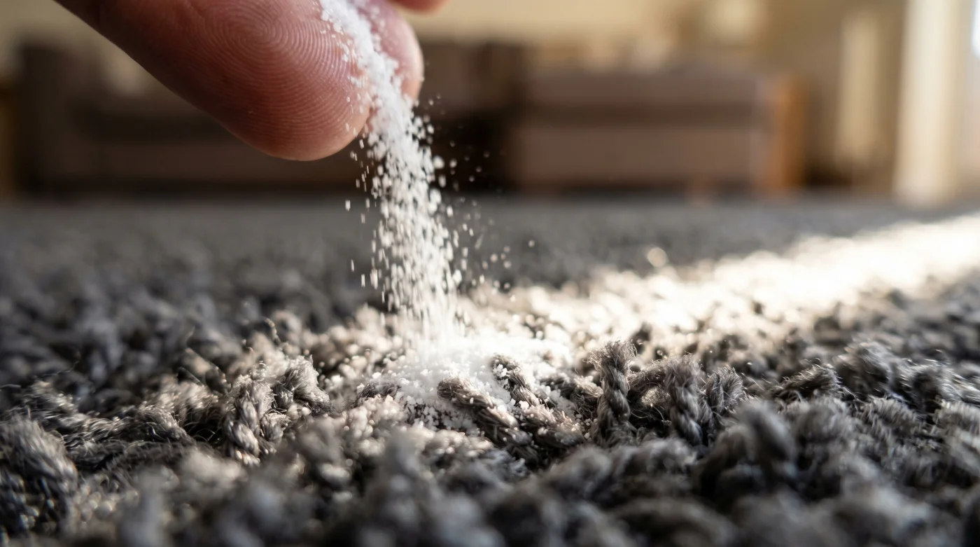 Qui entra in gioco il vero cambio di prospettiva: usa bicarbonato sul tappeto per eliminare puzza di urina. Spargi la polvere sulle macchie e osserva. Il bicarbonato di sodio non è un coprente, è un divoratore di acidi. La sua matrice alcalina va a caccia delle molecole acide dell’urina, agganciandole e neutralizzandole fisicamente, disidratando l’area colpita.