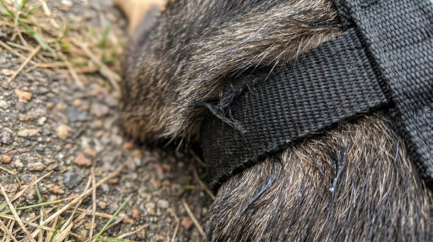 Il tuo kit tattico di verifica finale richiede l’uso delle tue mani: infilando due dita sotto ogni fettuccia dovrai percepire uno spazio vitale di scorrimento, la garanzia che il tessuto non genererà frizioni taglienti sul pelo durante le corse.