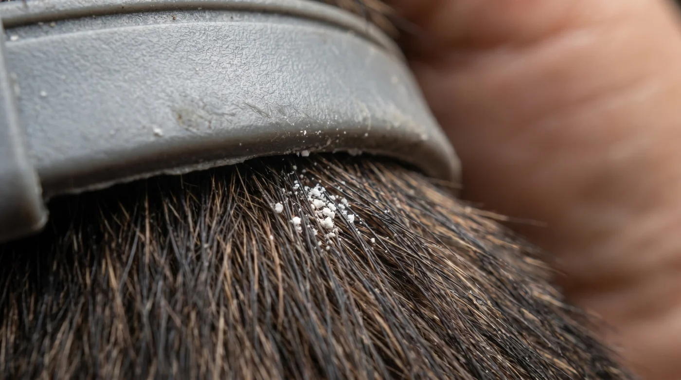 Se elimini d’istinto questo spazio vitale di manovra, crei un attrito a secco disastroso sulla stessa, minuscola porzione di epidermide. Il principio antiparassitario rimane intrappolato nella prigione di plastica, mentre la frizione incessante sulla pelle nuda genera arrossamenti cronici, perdita di pelo localizzata e vere e proprie piaghe da contatto.