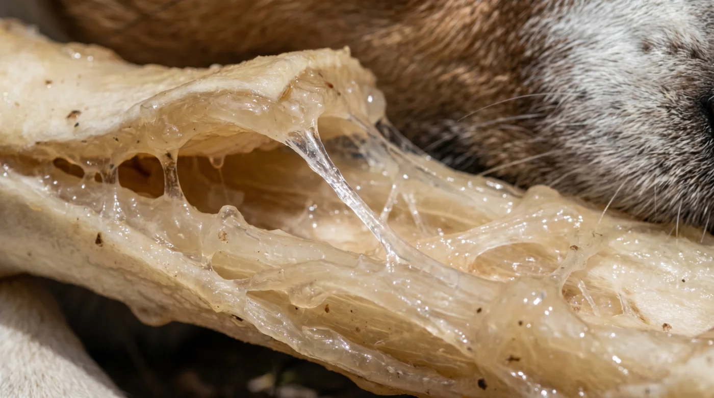 Immagina di masticare un grosso pezzo di cartone pressato che è stato precedentemente immerso in una vasca di colla vinilica. Quando l’osso di pelle bovina entra in contatto prolungato con la saliva e l’attrito dei denti, perde totalmente la sua rigidità iniziale. Non si sgretola in piccoli pezzi pronti per essere digeriti, ma diventa una massa gommosa, elastica e viscida.