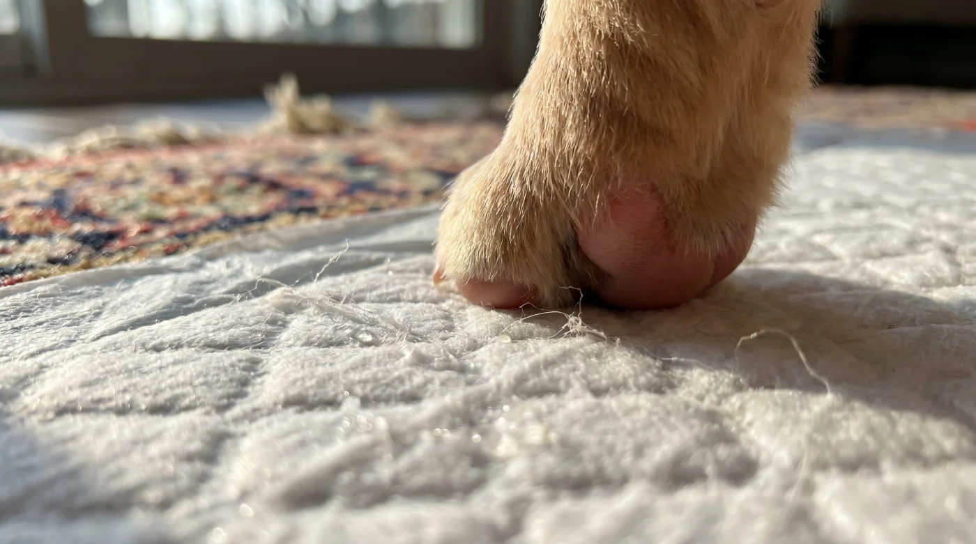 La consistenza spugnosa del panno igienico è una trappola sensoriale. Aiuta l’umano a pulire in fretta, ma confonde il cane, portandolo ad associare l’atto di urinare a qualsiasi elemento domestico cedevole, dai tappeti alle coperte scivolate dal divano.