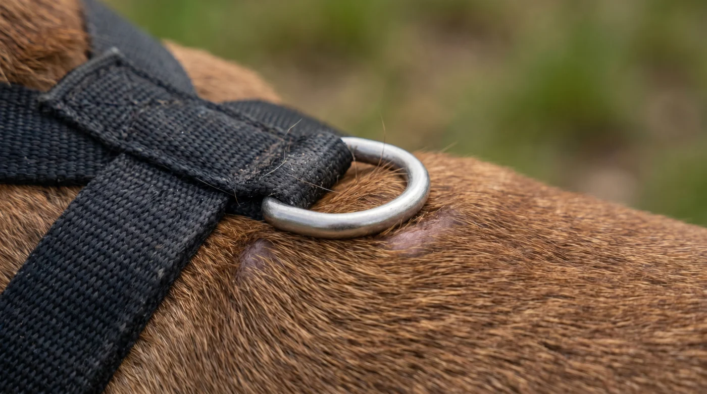 Osservi la sua schiena ondeggiare e noti come la pettorina scivoli morbidamente sul suo pelo. Hai scelto di lasciarla un po’ lenta, allentando le cinghie in nylon per permettergli di respirare meglio, per evitare che si senta costretto. È un gesto istintivo, **un atto di pura premura** che nasce dal desiderio di vederlo camminare libero, senza costrizioni rigide sul torace.