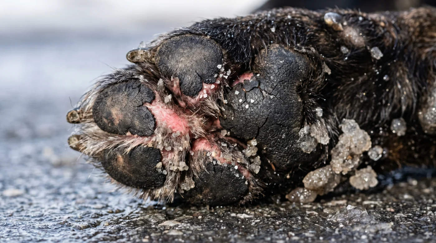 Eppure, sotto quell’apparente candore si nasconde una trappola chimica spietata. Non è il freddo a doverti preoccupare, ma quello che le amministrazioni comunali spargono per sciogliere il ghiaccio. Il mix di cloruro di sodio e calcio, combinato con il nevischio, crea una fanghiglia altamente corrosiva per le estremità del tuo animale.