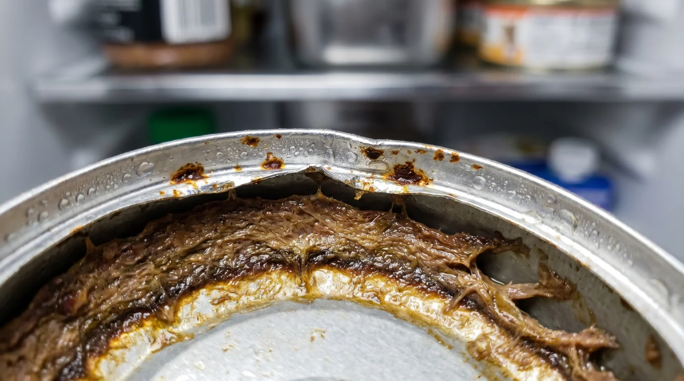 Questo è l’angolo cieco abituale in cui la maggior parte delle persone cade senza rendersene conto. Lasciare il cibo umido a riposare nel suo contenitore originario di metallo smette di essere una banale comodità e diventa un rischio quotidiano. L’ossidazione dei margini seghettati non si limita a corrompere il sapore superficiale, ma scivola verso il basso, intaccando la matrice della carne e abbassando drasticamente il valore del pH dell’intero pasto. È un passaggio che trasforma un alimento nutriente in una sostanza che costringe i reni e la vescica del tuo felino a un superlavoro costante per smaltire l’eccesso di acidità.