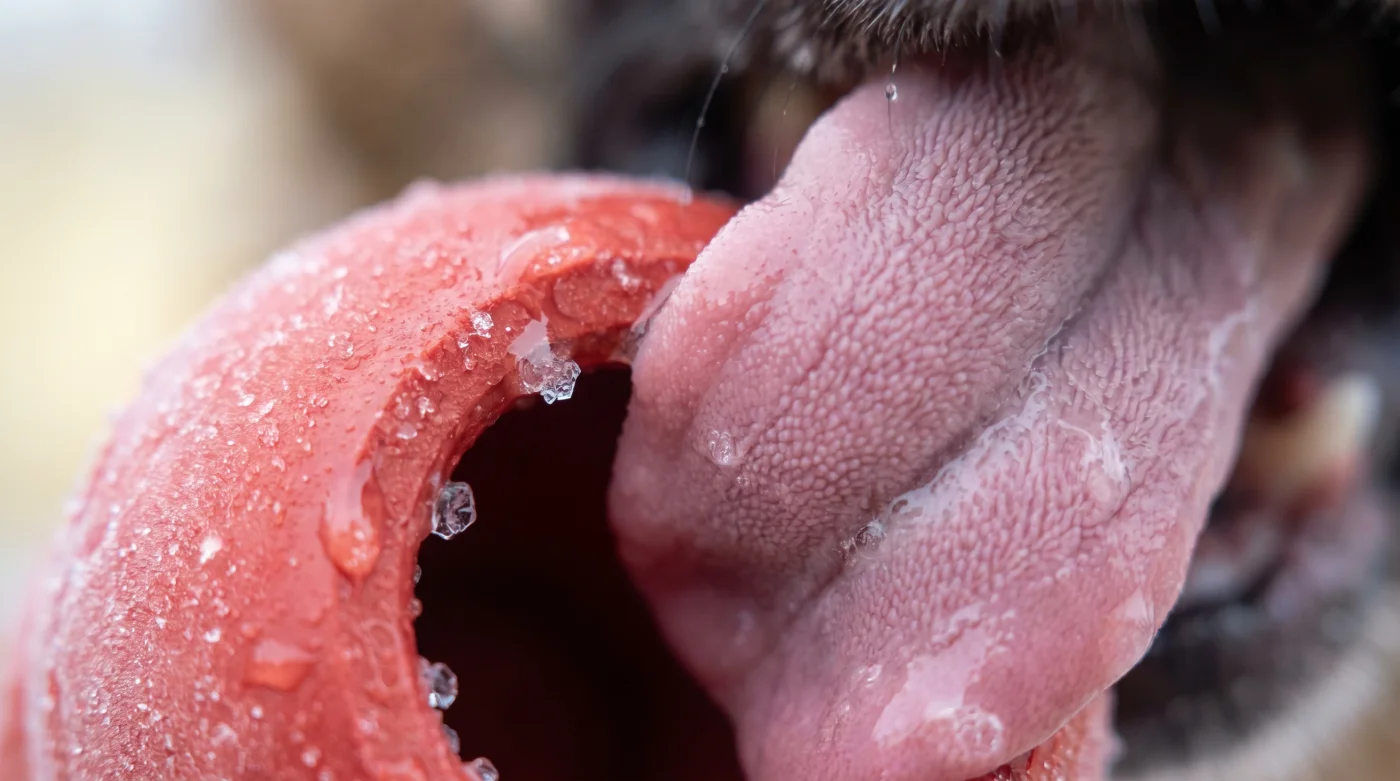 Nel momento in cui la lingua del cane entra per estrarre il cibo parzialmente sciolto, spinge meccanicamente fuori l’aria. Quando cerca di ritirarla, il tappo di ghiaccio ormai solidificato sul fondo impedisce il normale ricircolo d’aria, generando un effetto ventosa fulmineo.