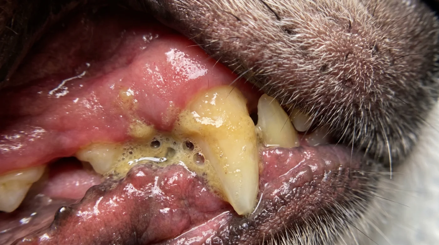 Eppure, se provi a sollevare il labbro del tuo cane circa venti minuti dopo quel rituale, potresti notare qualcosa di strano. Non troverai una superficie liscia e purificata, ma una sottile pellicola pastosa che avvolge la base dei molari, proprio dove la gengiva incontra lo smalto sensibile del dente.
