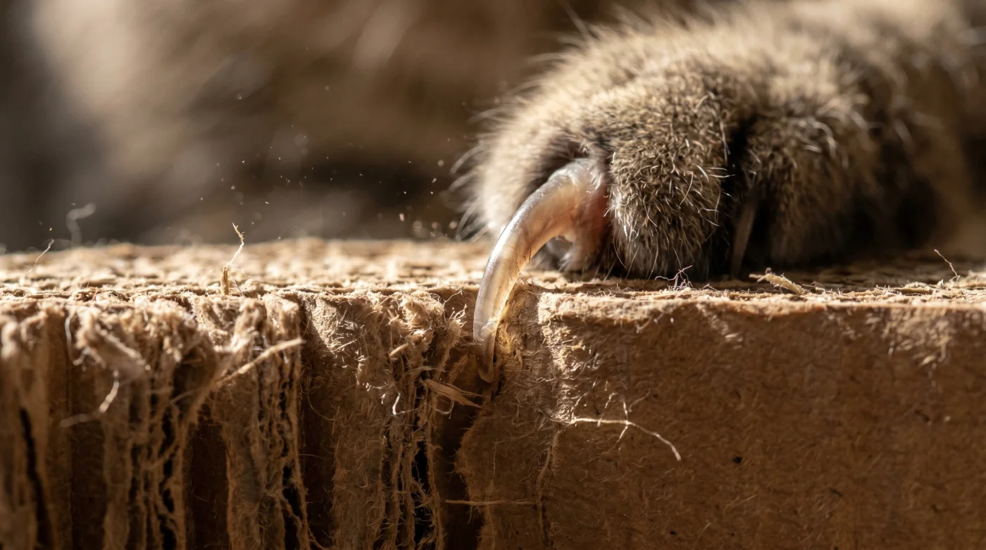 Il rumore dovrebbe essere quello della carta spessa che si lacera dolcemente sotto pressione. Un suono sordo, ritmico, che racconta di tendini tesi e di un istinto primordiale finalmente soddisfatto nel cuore del tuo salotto. Invece, ascolti solo uno scivolamento superficiale e aspro. Le zampe anteriori scendono in modo innaturale e le unghie graffiano a vuoto su una superficie sorda.
