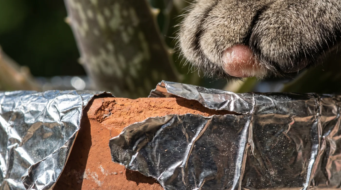 - L’esca del bordo: Piega un centimetro di alluminio verso l’esterno, facendolo debordare dal vaso in ceramica. L’impatto visivo e tattile deve attivarsi prima che il felino salti o si alzi sulle zampe posteriori.