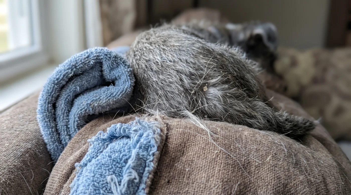 Prendi quel asciugamano ruvido, quello scolorito dai troppi lavaggi a 60 gradi, e stringilo tra le mani. Senti la trama del cotone secco cedere mentre lo arrotoli strettamente, trasformandolo da un semplice pezzo di stoffa in un cilindro denso e inespugnabile. Sotto il peso di un cane anziano, le blasonate schiume memory foam da 200 euro spesso collassano silenziosamente, lasciando la spina dorsale a cedere verso il pavimento senza un vero fulcro. Inserendo questo spessore ruvido appena sotto il cuscino della cuccia principale, crei un cuneo di pura resistenza fisica. Il suono di un animale dolorante che si sdraia cambia all’istante: non più un tonfo pesante seguito da un respiro affannoso, ma un sospiro profondo di decompressione termica e meccanica, mentre le vertebre trovano finalmente una spinta contraria stabile.