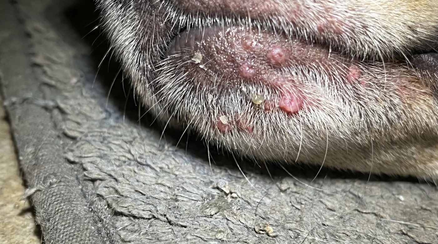 Noterai piccoli punti neri, arrossamenti sospetti o noduli duri alla radice del pelo sul mento e sulle labbra inferiori. Se l’animale sfrega insistentemente la testa contro i cuscini, l’infiammazione ha già raggiunto una fase acuta.