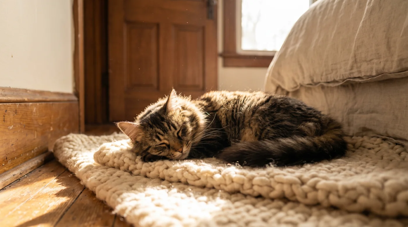 Invece di dover cercare un animale rintanato da ore dietro una lavatrice, con il pelo arruffato, lo stomaco chiuso per lo stress e gli occhi dilatati dalla diffidenza, aprendo quella porta **troverai uno sguardo finalmente morbido**. Lo vedrai stiracchiarsi pigramente sul letto, sazio del suo premio speciale e profondamente riposato, del tutto ignaro del caos festivo che ha solo sfiorato la sua bolla. Hai trasformato una potenziale giornata di terrore in una vacanza rigenerante, ricordandoci che, a volte, alzare un confine e proteggere gli spazi è la forma più alta e silenziosa di cura.
