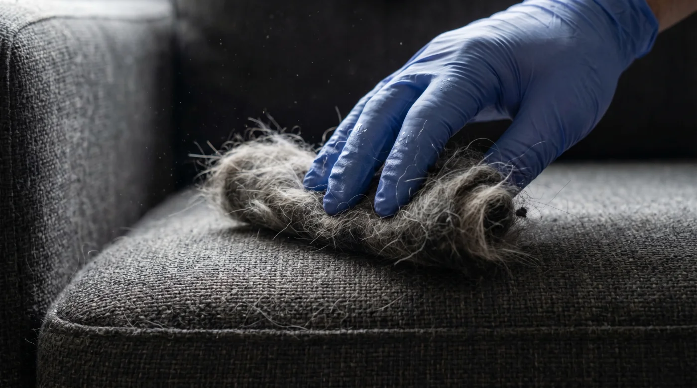 Il problema centrale dei peli incastrati nei tessuti d’arredo non è la loro quantità, ma la loro natura elettrica e fisica. Quando il tuo gatto o il tuo cane si strofina contro i cuscini, crea una carica statica invisibile ma tenace. I peli si fondono letteralmente con le fibre del divano, diventando un unico corpo intrecciato. Cercare di strapparli via con la colla del nastro biadesivo è come cercare di separare l’acqua. Devi cambiare radicalmente approccio: smetti di pensare alla forza bruta e inizia a pensare al magnetismo e alla frizione.