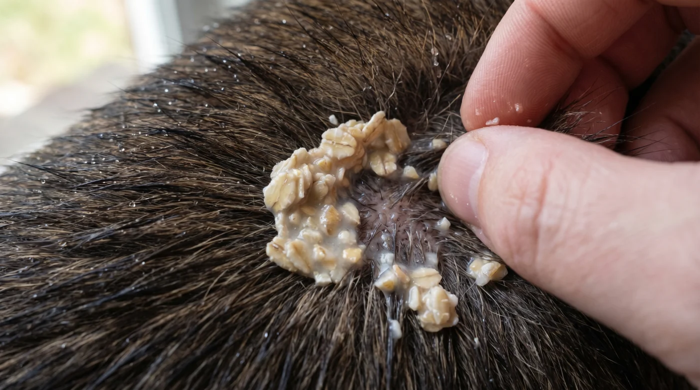 Eppure, la soluzione non richiede l’ennesima corsa disperata dal veterinario per cercare un palliativo chimico. Una soluzione modesta e silenziosa si nasconde all’interno di un semplice barattolo di vetro, confusa tra le comuni scatole della colazione che affollano la tua dispensa. L’avena cruda e l’acqua tiepida formano un’alleanza antica e perfetta, capace di trasformarsi istantaneamente in un vero e proprio balsamo rigenerante per la cute esasperata del tuo compagno a quattro zampe.
