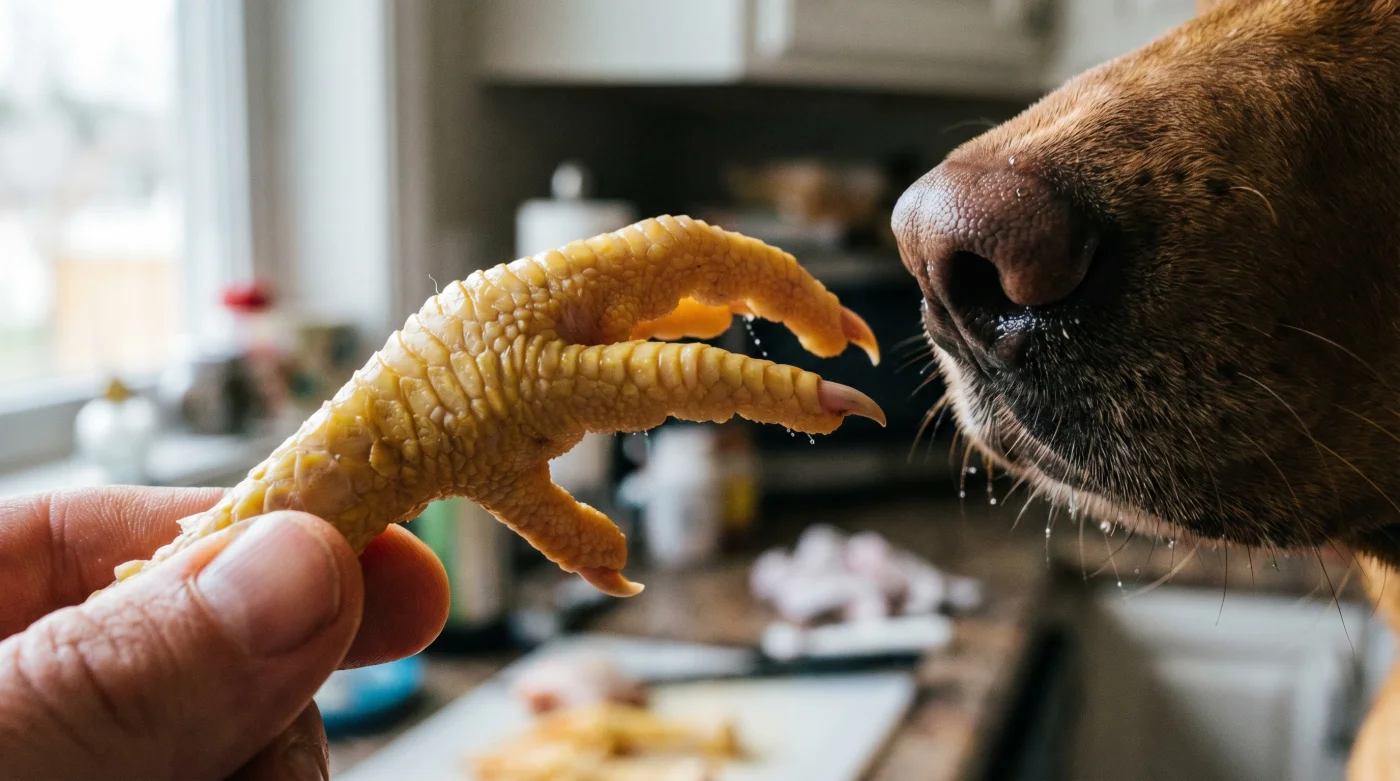 Un cane anziano con denti già compromessi, sensibili o traballanti non dovrebbe forzare contro strutture troppo tenaci. In questo scenario, puoi battere leggermente la zampa cruda con un batticarne su un tagliere prima di offrirgliela. Questo frammenterà le ossa interne alleggerendo il carico, pur mantenendo intatta la guaina ruvida di pelle e tendini che accarezzerà i denti superstiti.