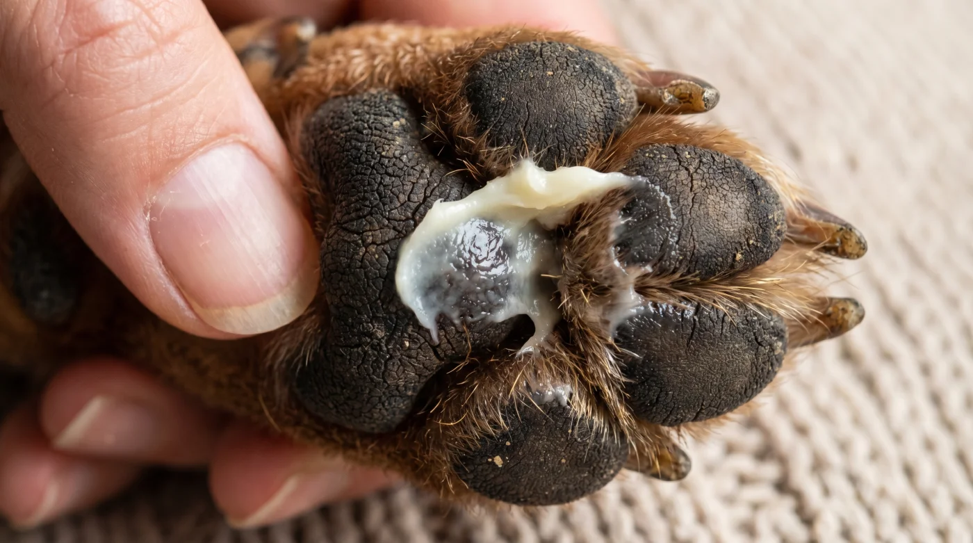Devo lavare le zampe prima di applicarlo? Sì, rimuovi detriti microscopici e terra con un panno morbido e umido, asciugando con estrema cura. Il burro deve sigillare l’umidità pulita, non la sporcizia.