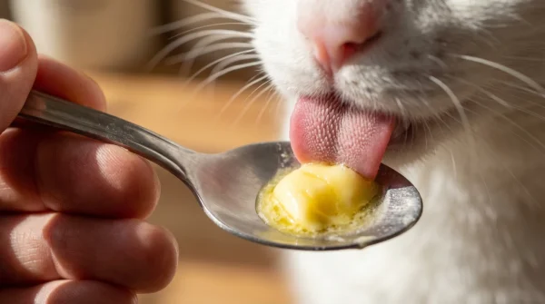 Qui entra in gioco il burro fresco. Non devi vederlo come un alimento o uno sgarro alla ferrea regola dietetica, ma come un vero e proprio lubrificante termico. Quando il gatto lecca quella piccola porzione, il calore del suo corpo e della sua bocca trasforma istantaneamente il grasso solido in un olio vellutato e avvolgente.