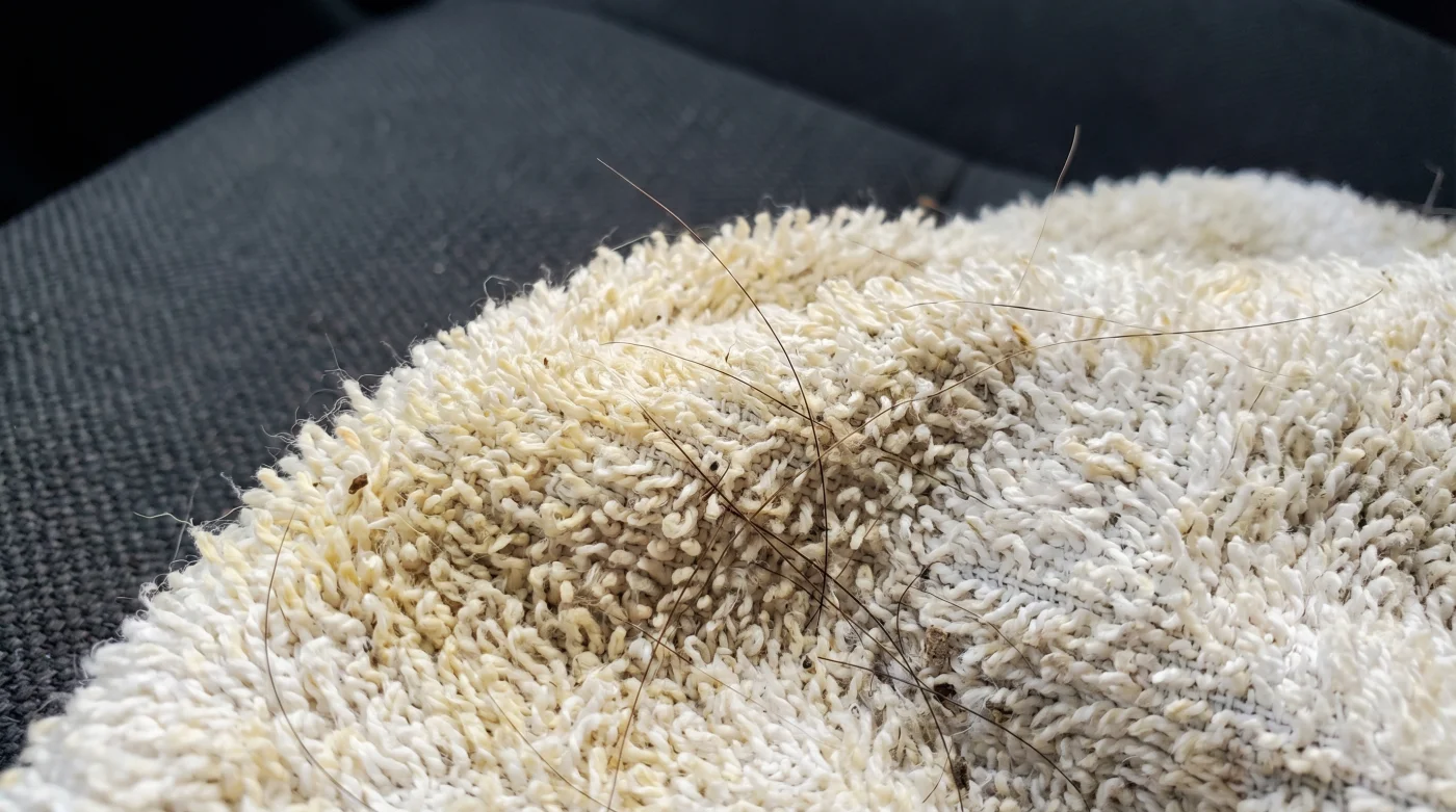 Come rimuovo i peli prima di metterlo in lavatrice? Sbatti il telo energicamente all’aperto; la trama ruvida rilascia il pelo e lo sporco superficiale molto più velocemente dei tessuti sintetici.