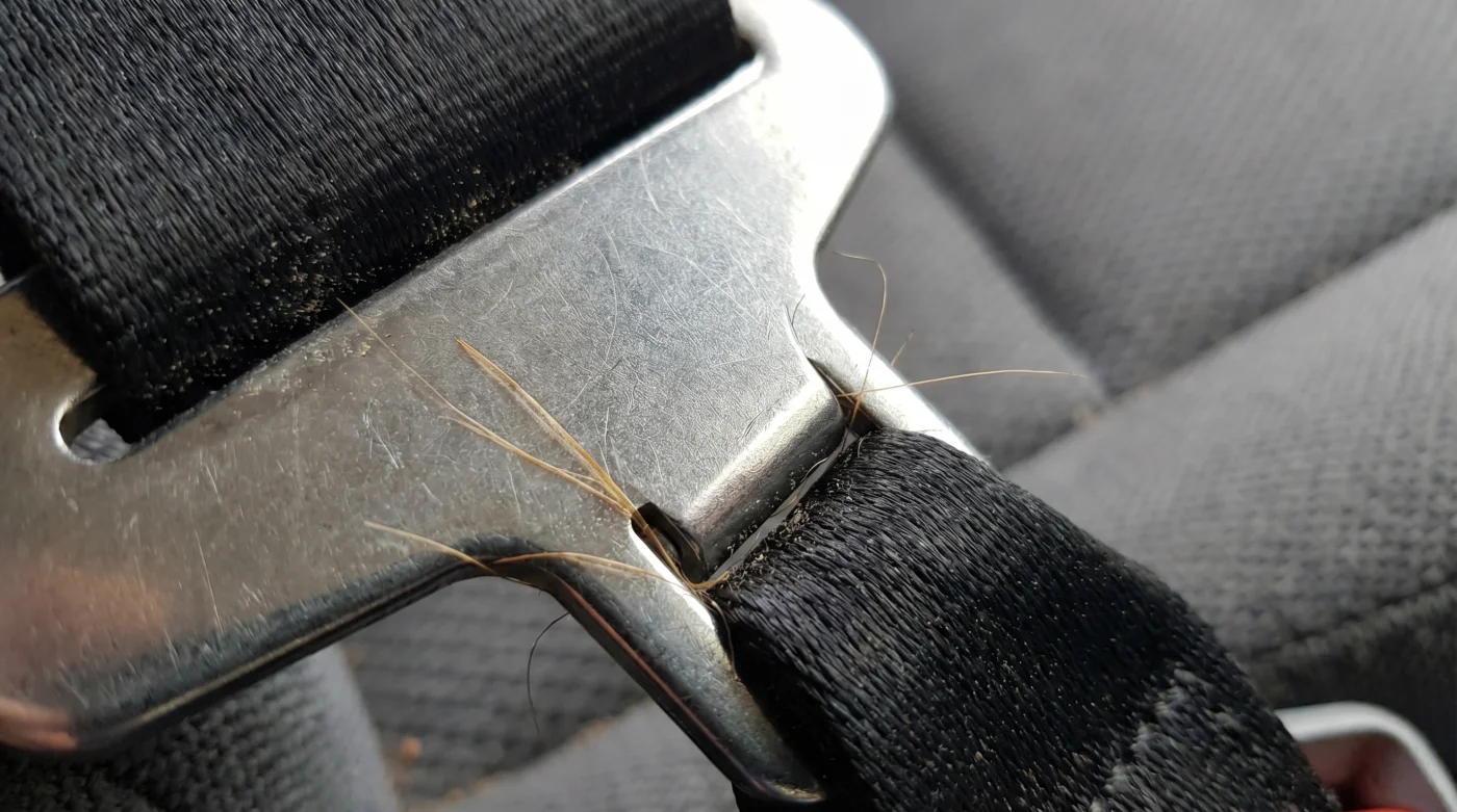 5. Test del tendicinghia. Afferrate l’estensione dell’imbracatura e tiratela verso di voi con forza esplosiva. Dovete osservare il meccanismo **bloccarsi istantaneamente sotto sforzo**, esattamente come risponde la cintura lato passeggero quando provate a sporgervi velocemente in avanti.