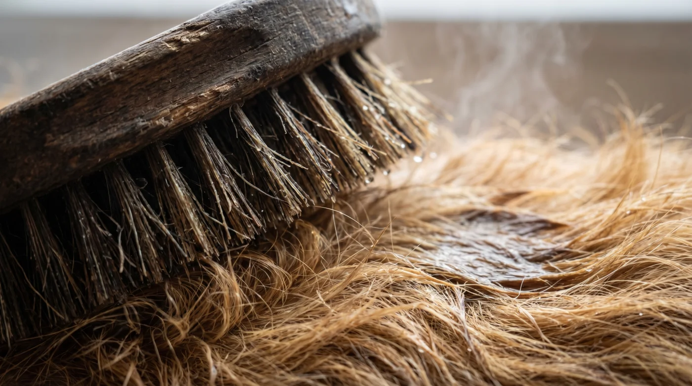 1. La formula esatta: Mescola una singola parte di aceto di mele crudo (rigorosamente quello opaco con il sedimento organico sul fondo) e tre parti di acqua tiepida a circa 25 gradi Celsius all’interno di un nebulizzatore pulito. 2. Lettura del corpo: Prima ancora di toccare il pelo con l’attrezzo, osserva attentamente la postura e la tensione muscolare. Se le orecchie si appiattiscono contro il cranio, stai già tirando troppo la cute e devi fermare la mano.
