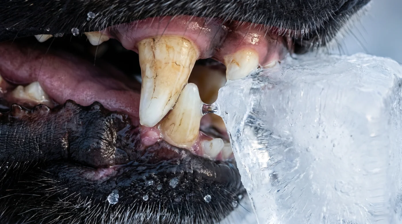 Pensiamo al ghiaccio come a un condizionatore naturale a costo zero. È la stessa logica che applichiamo quando beviamo una bibita ghiacciata per abbassare la nostra temperatura corporea. Tuttavia, l’anatomia canina ha uno scopo diverso: i denti del cane non sono progettati per frantumare pietre di ghiaccio, ma per strappare e tagliare tessuti elastici. La meccanica del danno è pura termodinamica. Quando un dente assorbe un calo termico improvviso di quasi 40 gradi, i cristalli di idrossiapatite dello smalto si contraggono in modo violento.