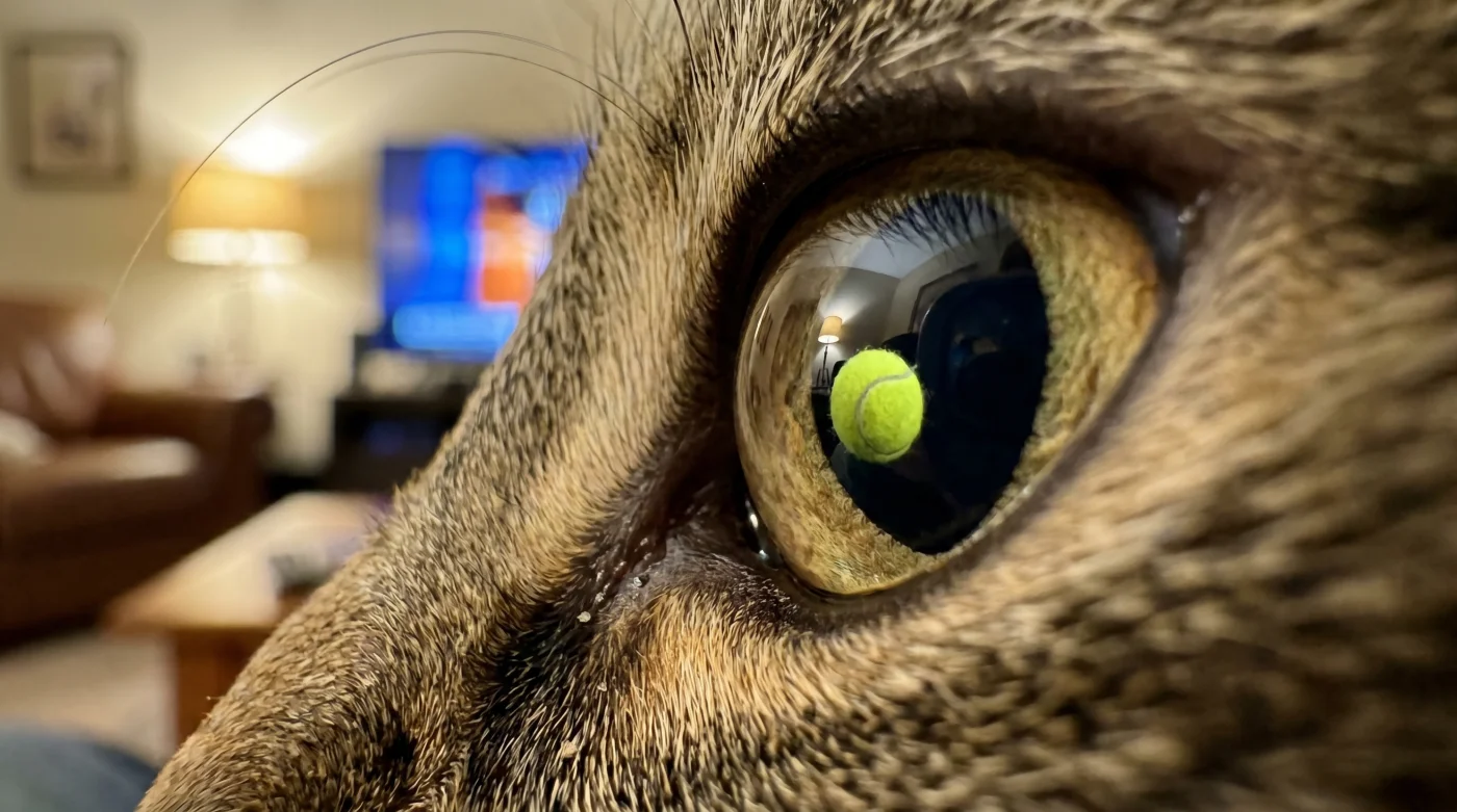 Il tennis offre l’esatto contrario. Il contrasto cromatico tra la pallina giallo neon e i campi cattura immediatamente i fotorecettori del gatto. Il movimento laterale, ritmico e prevedibile dello scambio agisce come un pendolo ipnotico. Inizia a tracciare la traiettoria: destra, sinistra, rimbalzo. Questo sforzo visivo mirato dirotta l’energia nervosa del sistema simpatico, costringendo il cervello a entrare in una fase di attenzione selettiva che abbassa drasticamente frequenza cardiaca e produzione di cortisolo.