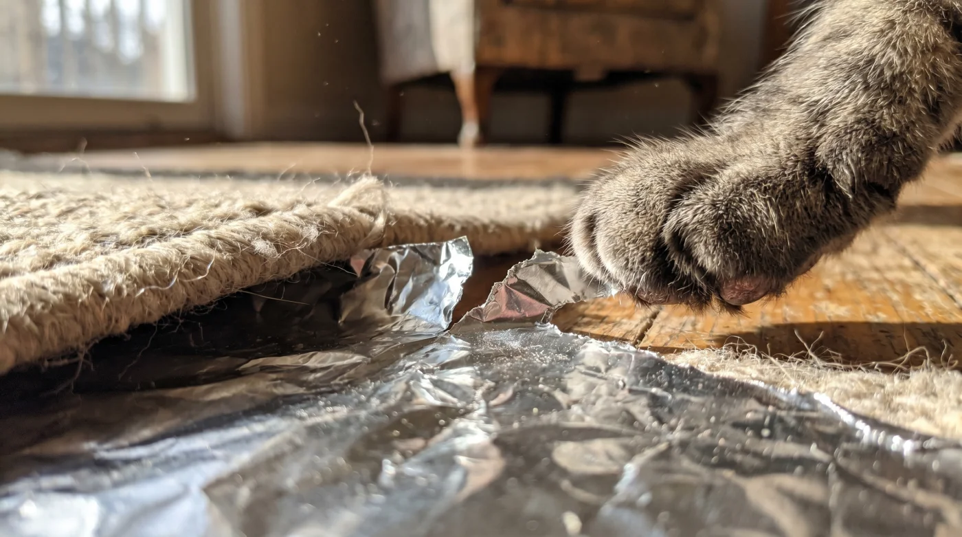 Il pungente odore di ammoniaca colpisce le narici prima ancora che il piede nudo tocchi la lana umida del tappeto in salotto. È una sensazione viscerale, un misto di frustrazione e rassegnazione che chi vive con un felino conosce fin troppo bene. Hai speso decine di euro in spray repellenti al limone che svaniscono dopo un’ora, lasciando il gatto libero di rivendicare nuovamente quel centimetro quadrato di territorio. Poi, il silenzio della casa viene rotto da un suono metallico e secco. Un crick improvviso sotto le zampe. Quella banale pellicola argentata che usi per coprire gli avanzi nel frigorifero nasconde una meccanica comportamentale ignorata dalla maggior parte degli educatori.